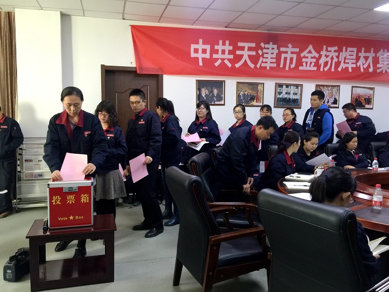 隨后,大會(huì)以鼓掌和舉手表決等方式通過(guò)了選舉辦法和監(jiān)票人、計(jì)票人名單,介紹了黨委委員候選人情況,與會(huì)有選舉權(quán)的黨員采用無(wú)記名投票差額選舉的方式選舉產(chǎn)生了7名中共天津市金橋焊材集團(tuán)委員會(huì)委員。