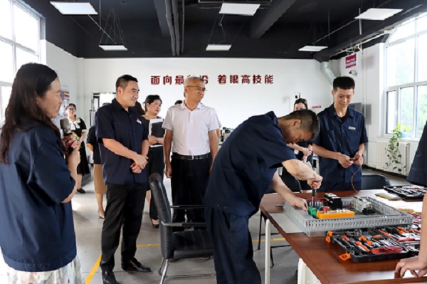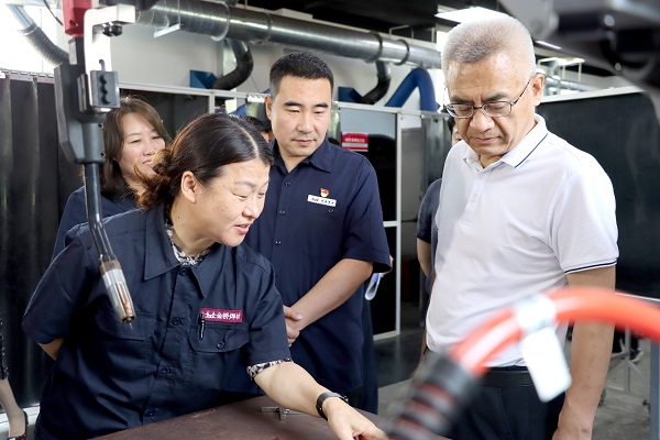 隨后,賈堤一行走進(jìn)工業(yè)機(jī)器人實訓(xùn)基地,深入了解了集團(tuán)技能人才培養(yǎng)與焊材智能化生產(chǎn)線建設(shè)情況。賈堤指出,金橋集團(tuán)要加大自主研發(fā)投入,夯實技術(shù)底蘊,提升品牌價值,拓寬人才引進(jìn)渠道,進(jìn)一步加大吸納人才的力度,促進(jìn)高質(zhì)量充分就業(yè)。